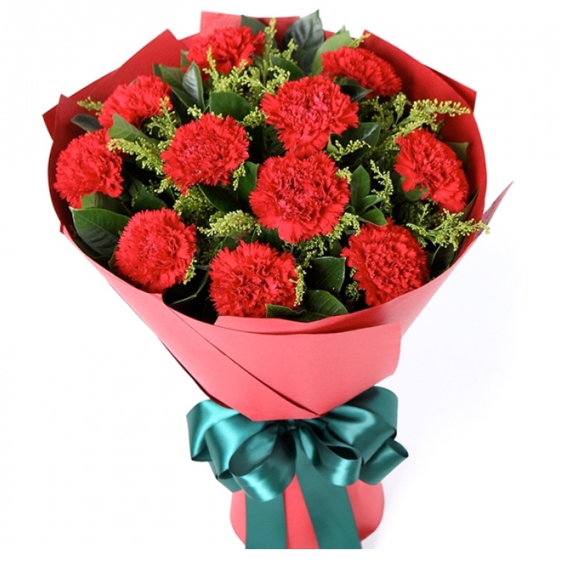Букет из 11 гвоздик с зеленью