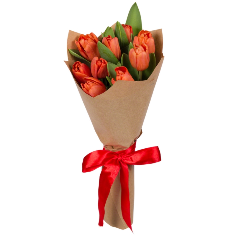 Букет из 9 красных тюльпанов в крафте