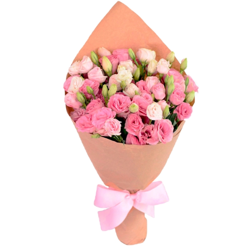 Букет из розовой эустомы в крафте