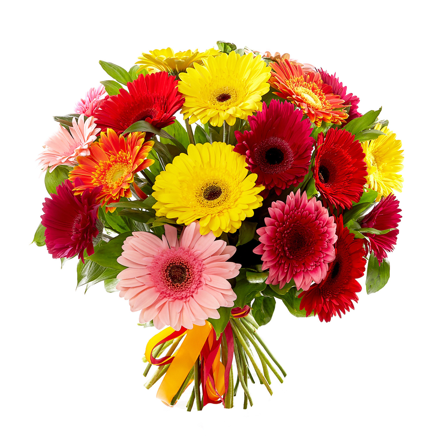 Букет состоит из MIX из 19 гербер, красивая упаковка, атласная лента.