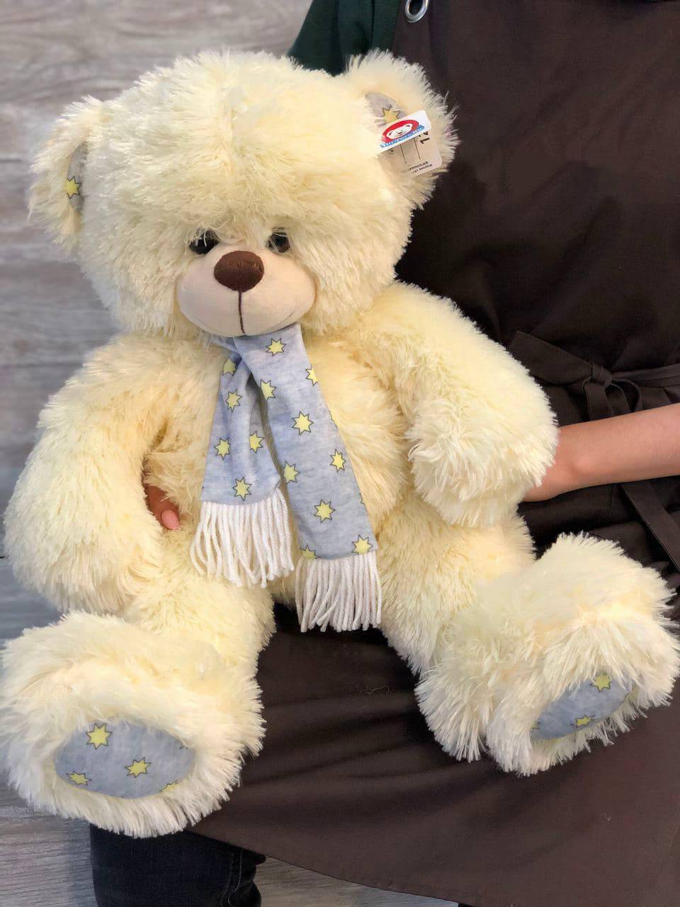 Игрушка Медведя белый шарф звезды. Для дополнения к цветам, и для индивидуального подарка!