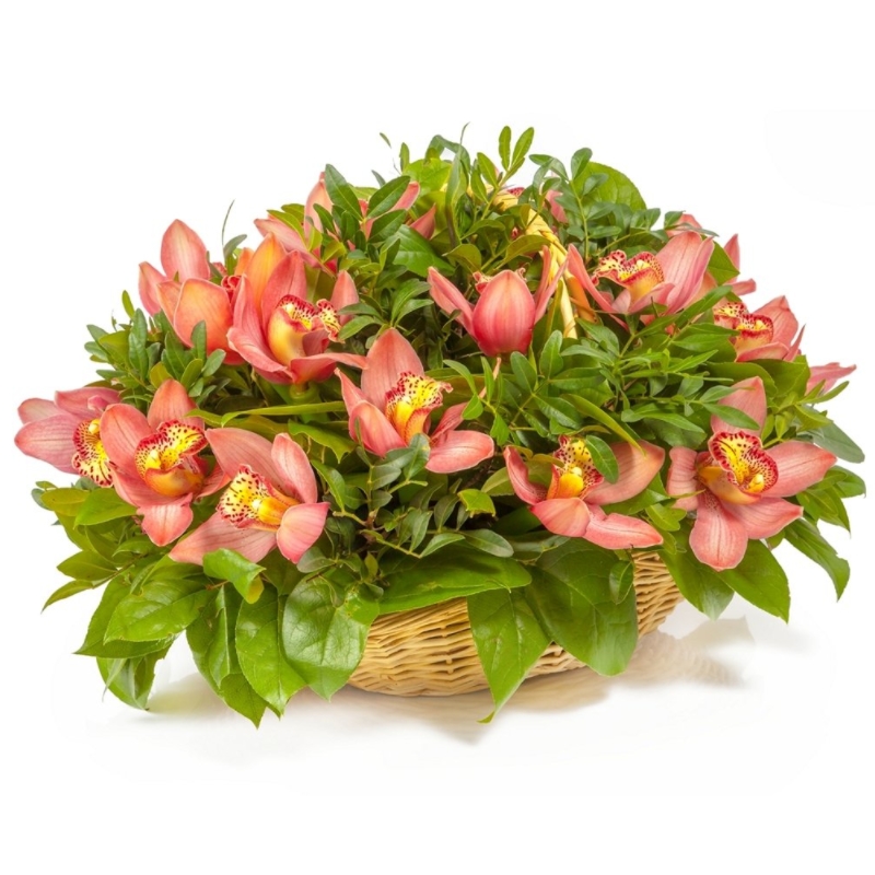 3 орхидеи Цимбидиум, зелень, удлинители для орхидей, корзина.