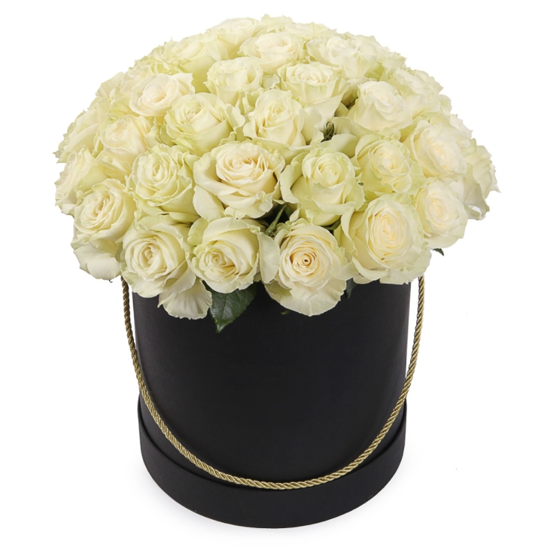 Букет состоит из 51 белая роза, коробка.