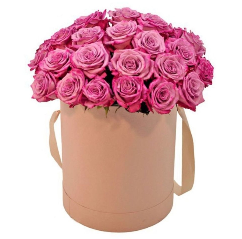 Букет состоит из 31 розовая роза, коробка.