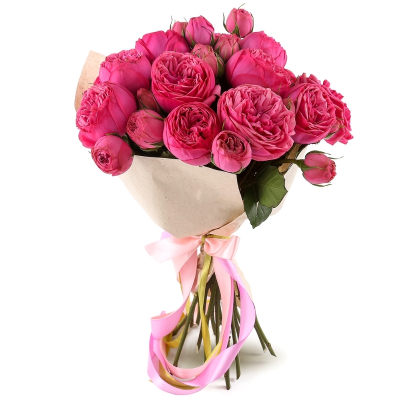 Букет из 11 кустовых пионовидных роз в крафте