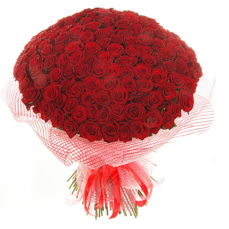 Букет состоит из 201 красная роза, красивая упаковка, атласная лента.