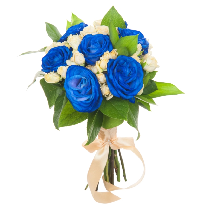 Роза синяя 7 шт., Роза кустовая 4 шт. |